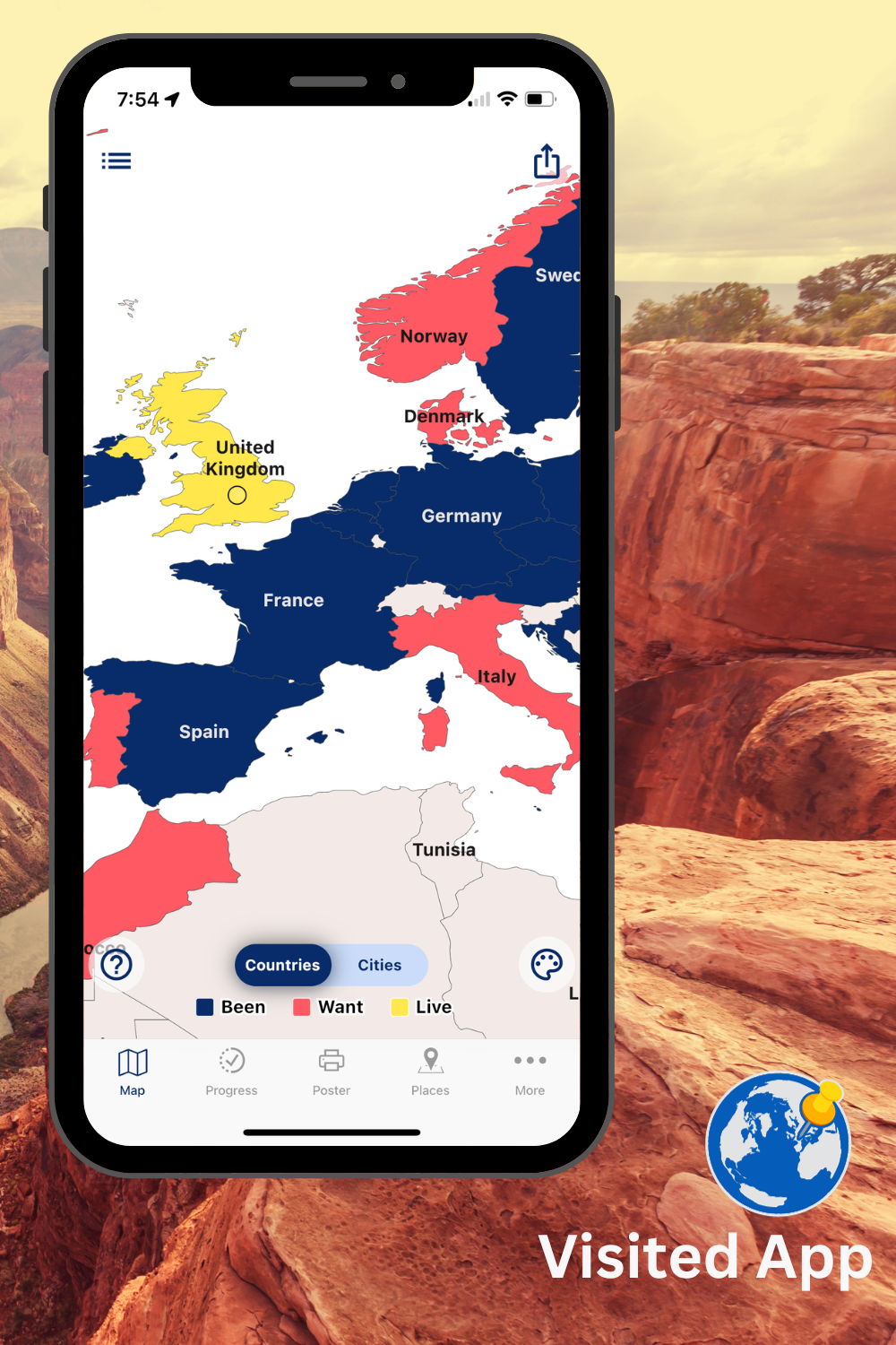 Popular travel app, Visited, is a place to keep track of all the countries, US States and cities a traveler has been to or wants to visit. The users can see their travels on a personalized map, have it printed in a poster form or view their personal travel stats. To help inspire travel, users can select sites from multiple lists by categories such as world wonders, art museums, national parks, ski locations and more. To help decide where to next? Visited showcases countries based on the number of places they added to their bucket-list.
