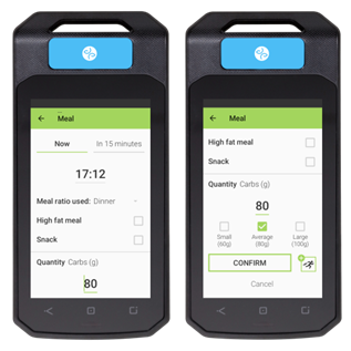 Based on the declaration, the glucose trend at time of meal and incremental patient data, the algorithm will recommend the insulin dose to deliver and manage post-prandial time period.