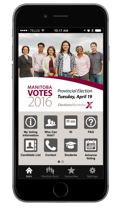 Recognizing the trends, Elections Manitoba announced their “Manitoba Votes 2016” mobile app. “Manitoba Votes 2016” was developed to improve information accessibility and convenience for voters. Highlights include:
