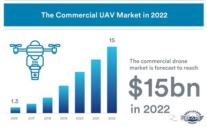 In 2016, the market value of the commercial unmanned aerial vehicle industry is $ 1.3 billion; according to the forecast, the market value of the commercial unmanned aerial vehicle industry will grow rapidly over the next five years. By 2022, this figure will reach $ 15 billion, for nearly 20 times in 2016. The concept of market value for the commercial UAV industry includes hardware, software and analysis, as well as gross revenue for UAV services.