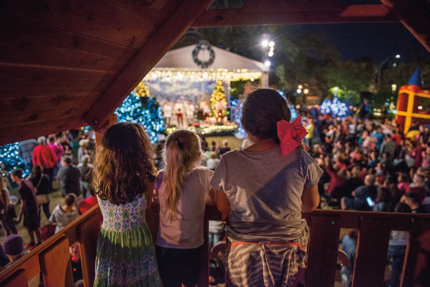 Located at the corner of Drew Street and Osceola Avenue, Winter Wonderland is a complete Christmas village with nightly entertainment, photos with Santa, cookie decorating with Mrs. Claus, a hot chocolate shop, a petting zoo, pony rides, playground, Bouncy House, Giant Slide and Holiday Express Train.