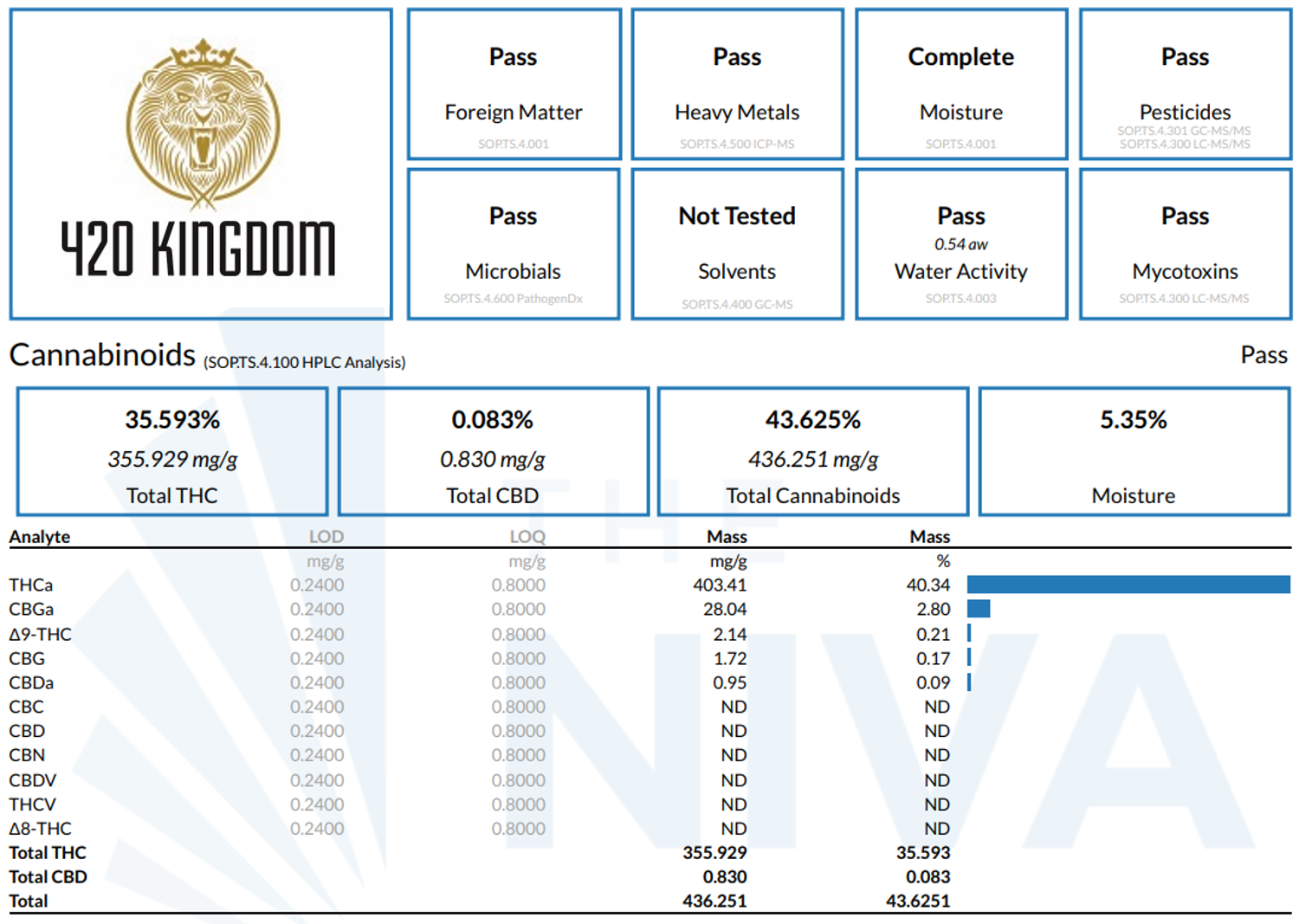 Fast on the heels of their successful launch of Watermelon Mimosa at 40% total cannabinoids, 420Kingdom is proud of their ability to successfully deliver state-of-the-art potency.