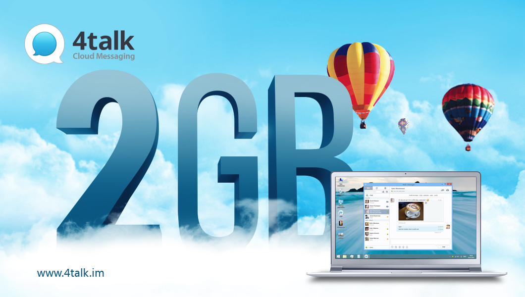 Due to doubled numbers of file sharing among 4talk users, S. Kravtsov announced that every user can send not only two times more, but two times bigger files - up to 2GB. And by all means, no restrictions on file type. At the moment users can share these files effortlessly on Mac OS X and Windows platforms, but these files are accessible on any device. 4talk users have 15GB free cloud storage, so their huge files will not get lost and will be synced throughout all used devices till they are removed.