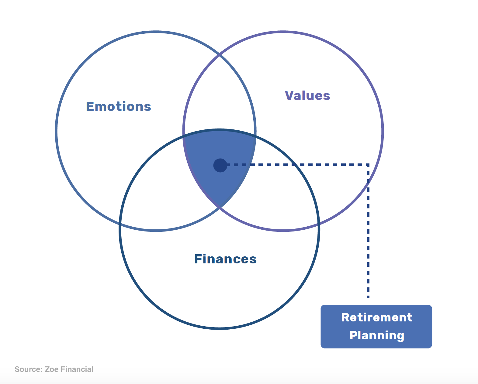 Planning for retirement is not “one-size fits all.” That is why Zoe’s Guide to Retirement Planning approaches planning through a holistic framework that evaluates how an individual’s emotions, values, and finances overlap.