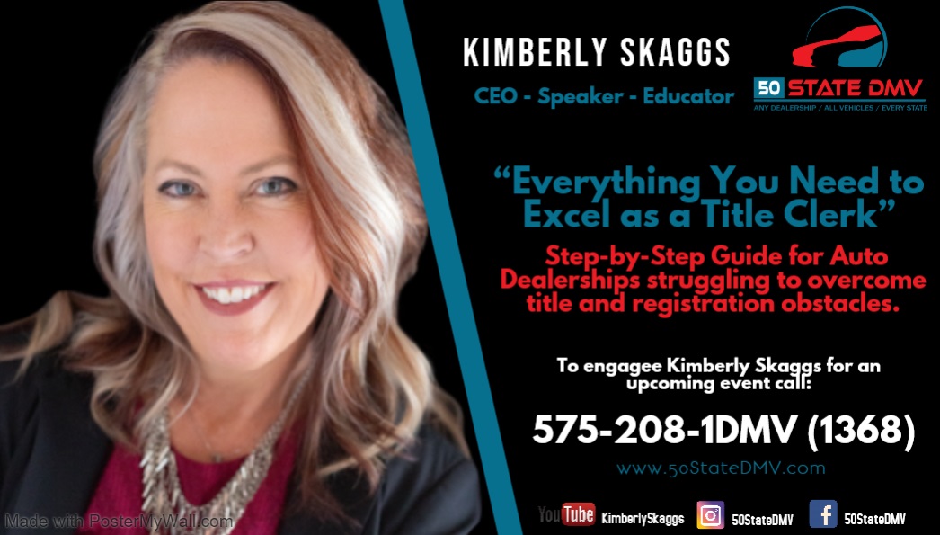 Kimberly brings a wealth of knowledge and expertise to the automotive industry and is a subject matter expert in the title and tag sector where she has focused her career for 15 years. She is the author of Vehicle Title Clerk Master Course: Everything You Need to Excel as A Title Clerk and offers vehicle title clerk training as well. Skaggs has a few open calendar dates available in 2019 and is now booking engagements for 2020. For more information, visit www.50StateDMV.com.