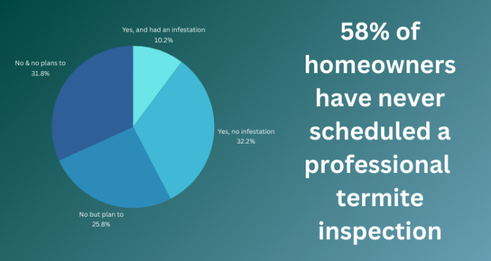 Another 32% of homeowners have no plans to do so. This means that countless homes could be at risk of termite infestation and their resulting damage, while homeowners are none the wiser.