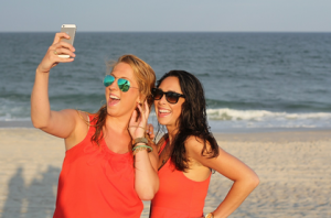 What do we have here? Two girls in colorful shirts are enjoying the beach and playing around with a phone. They look pretty satisfied, so they’re probably using AwesomeApp, right?