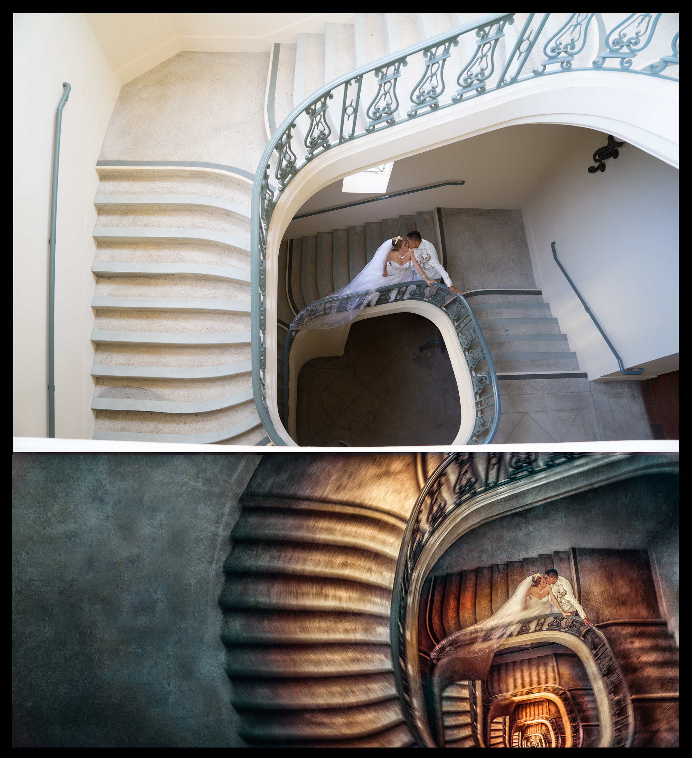 When Leon first did a photo where he swapped the background he says he asked other photographers if he is allowed to do that. He remembers one particular response, “why not?”. “I was not doing photojournalism. My bride was the client and it came down to what she wanted”, he says “ “I honestly am trying to create beautiful art”, he continues. “I see certain photos as a starting off point for the creative process. Of course these are extreme examples. Most edits the couple won't even realize anything was changed. Removing exit signs, waiters in the background, adding lights. Whatever the image calls for.”
