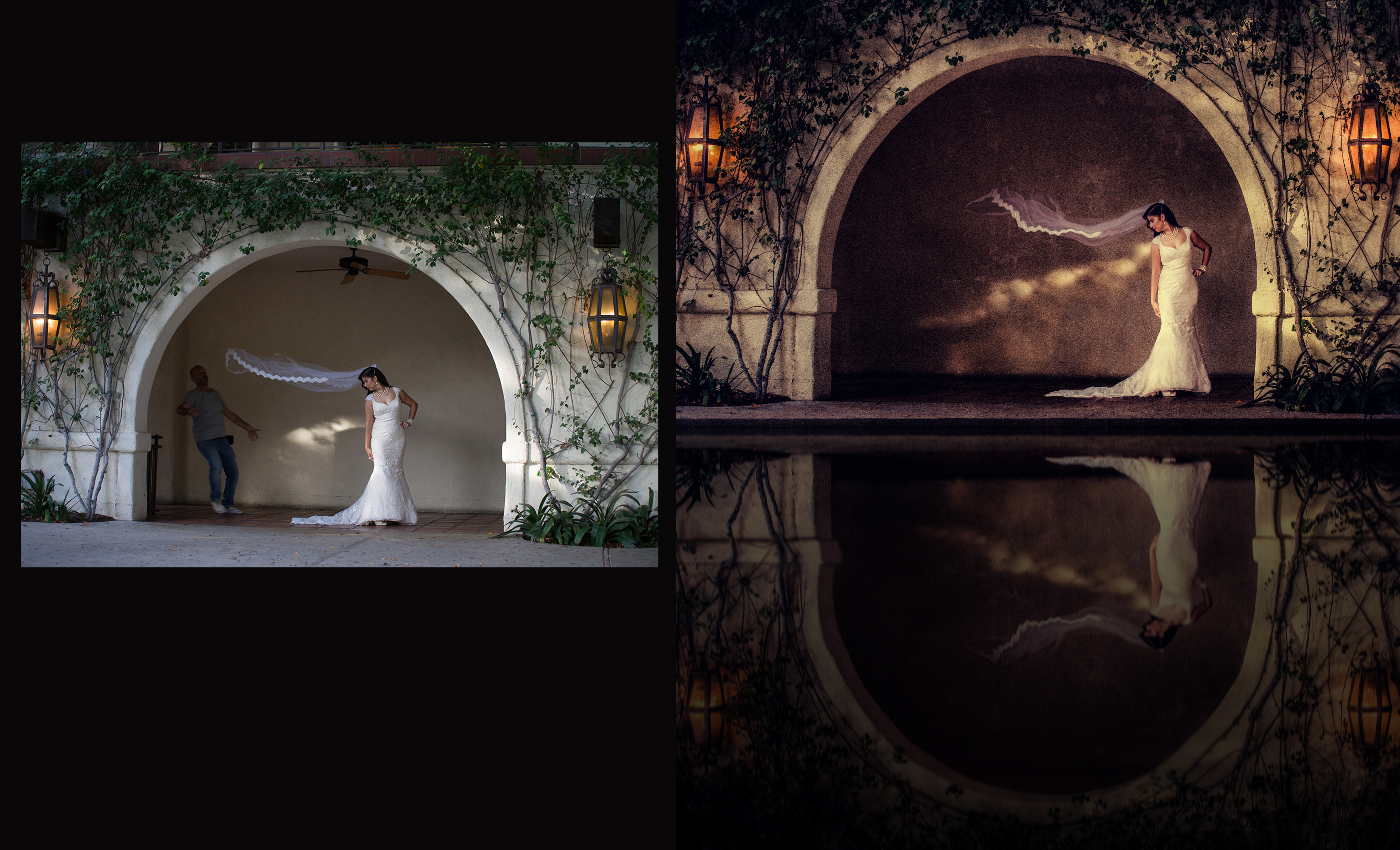 Los Angeles, CA, March 29, 2016 (Newswire.com) - Los Angeles based wedding photographer Leon Jimenez who owns Cloak Photography was photographing a wedding and the bride looked stunning in her beautiful wedding dress. The particular space she was in not so much. He had an idea for a shot in his mind and the venue had a lovely bridal suite but the Bride had broken her back months before the wedding and was not up to make the trek back to the suite so Leon said, "don't worry I will change the background." Leon has 18 years of Photoshop experience and was feeling confident at the time in his skills to pull it off. "I didn't even start working on the image for weeks. I really thought it I might have bit off more than I could chew," he admits.