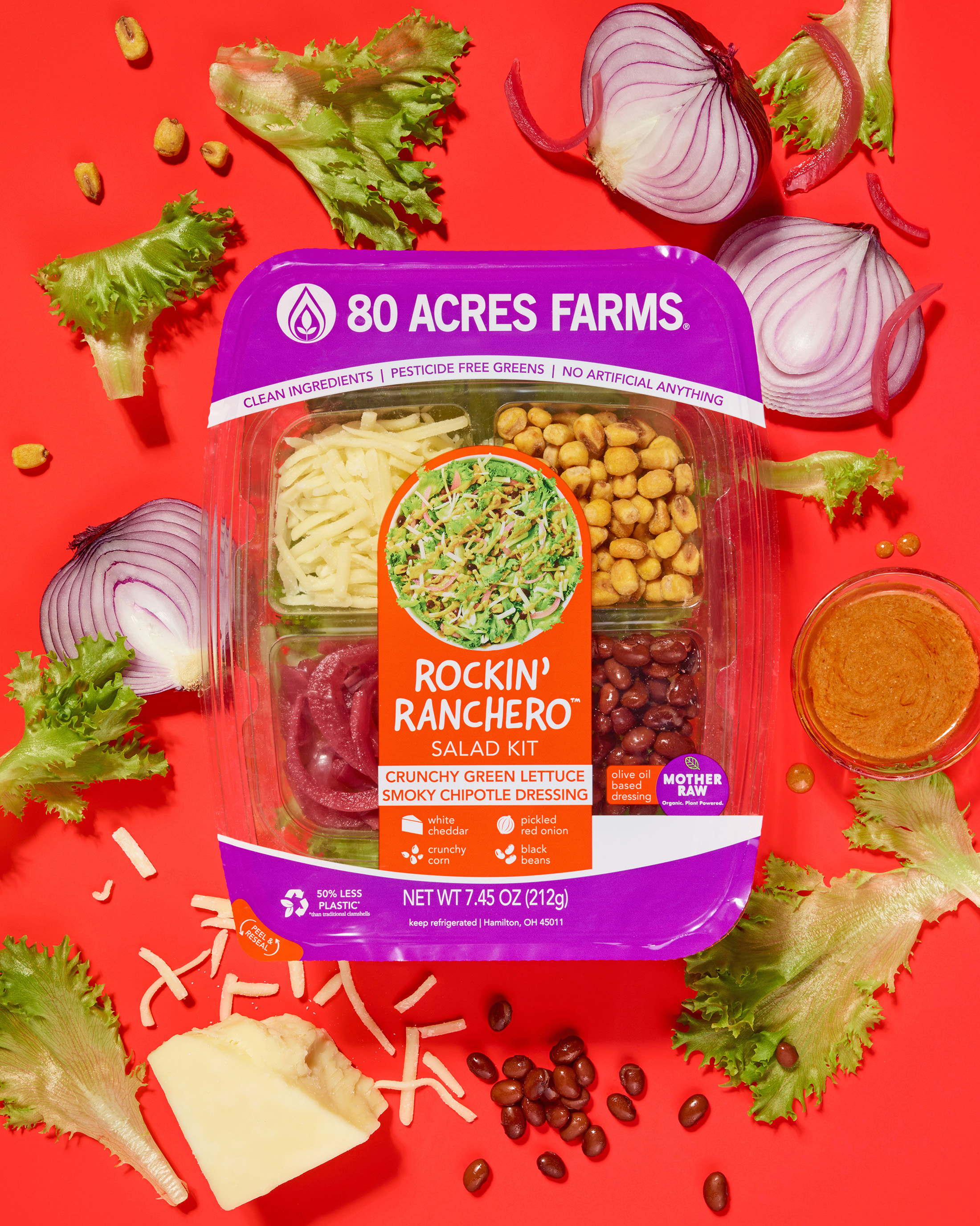 HAMILTON, Ohio, September 5, 2023 (Newswire.com) - 80 Acres Farms, an industry-leading vertical farming company, is announcing its first foray into grab-and-go fresh meals. Starting this month, consumers will be able to find the company's ready-to-eat salad kits at more than 200 locations in Ohio, Illinois, Kentucky, and Tennessee.