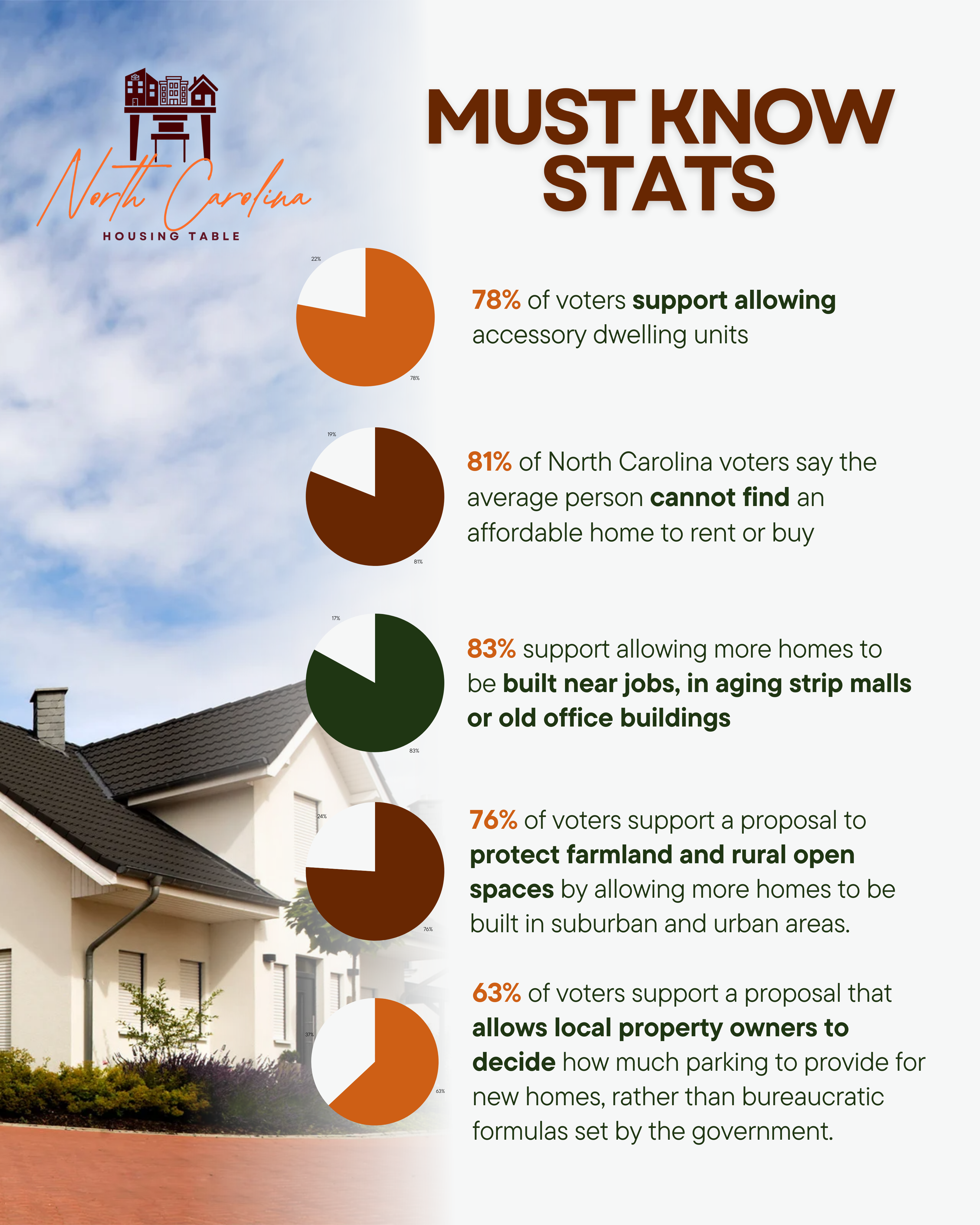 "These results clearly show that the need for more housing is the number one priority for North Carolina voters," said Tim Minton, Executive Vice President of the North Carolina Home Builders Association. "Voters' overwhelming support for removing burdensome local regulations is a key part of the solution."