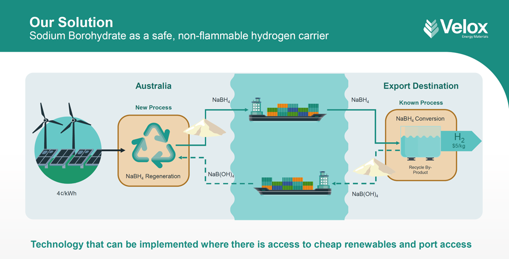 "Low cost and safe transport and storage of hydrogen is the largest impediment to the growth of the hydrogen sector. Velox, through subsidiary Kotai Energy and its partners, is developing a highly efficient process for the transport and storage of hydrogen.