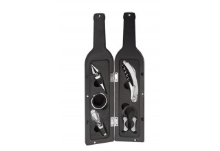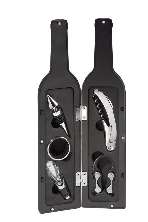 A friend to both the wine lover and entertainer alike, the Ozeri Wine Accessory Set springs open to make all its wine tools available instantly and snaps back into the shape of a bottle with its magnetic lock for storage on a bar counter or wine rack for the next occasion.