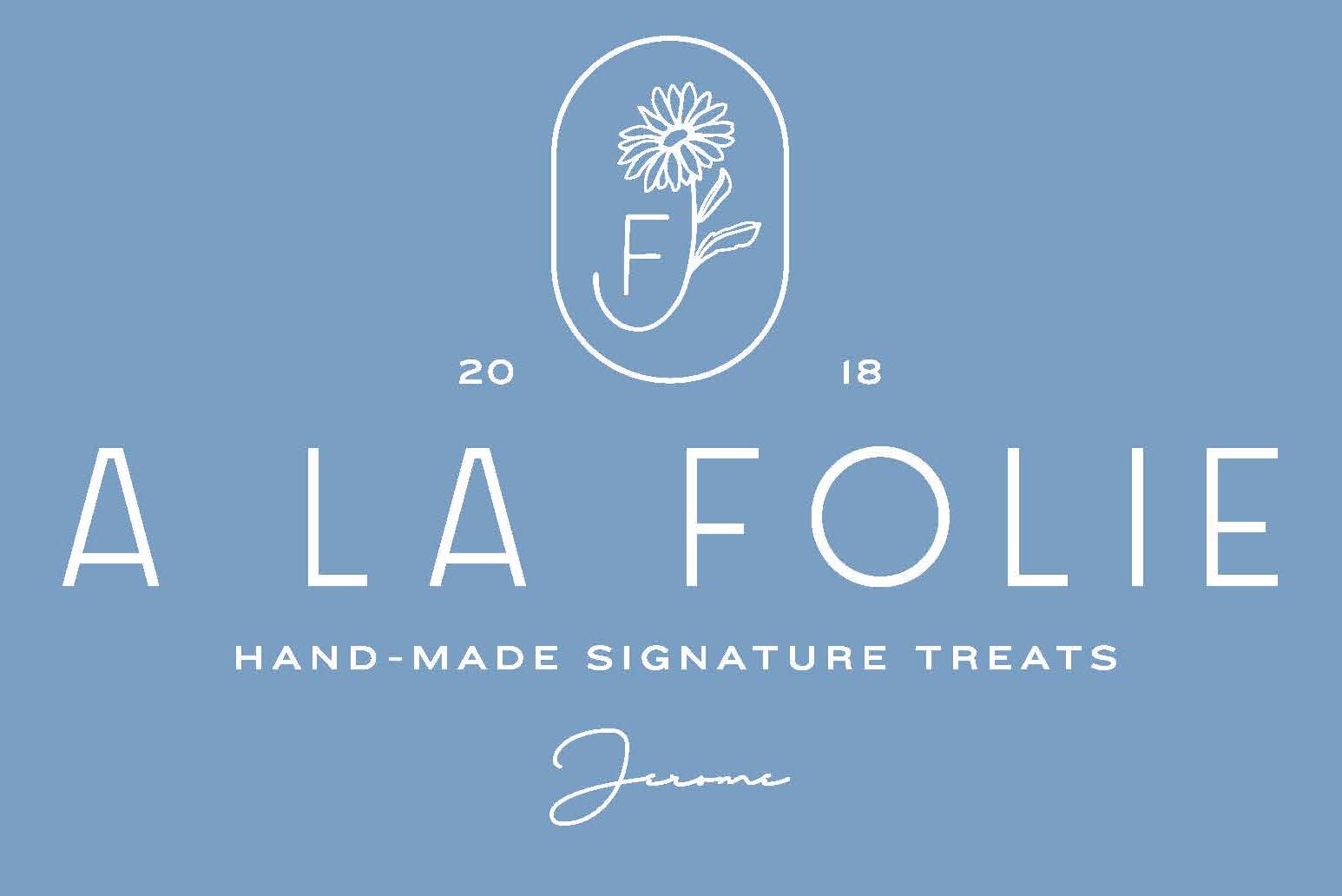 A LA FOLIE creates signature sweets in the authentic French tradition under Chef Jérôme Landrieu. A LA FOLIE was founded by Chef Jérôme and his wife Alexis Karter in 2019. The name "A LA FOLIE" comes from a French expression often used by the founders: "Je t'aime a la folie," which translates to: "I love you like crazy." The name A LA FOLIE is emblematic of the love the founders share for each other, their work, and their community.