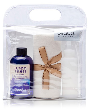 The Tummy Tight kit is comprised of a surgical grade compression bandage and a liquid mineral serum which is applied to the bandage before it is snuggly wrapped around the midsection and worn for 30 to 45 minutes, three times weekly. The company that created the kit, Beauty Be Natural, promises a trimmer, tighter waistline in as little as one week if used as directed. According to their Web site, www.beautybenatural.com, some women may notice improvements after the very first application.