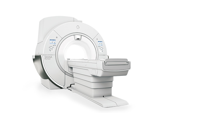 The SIGNA Pioneer enhances neurological studies with innovative techniques that allow physicians to map white matter fibers in the brain in order to understand the effect of multiple sclerosis, tumors, or traumatic injuries. The scanner can also aid in the diagnosis of prostate and breast cancers, as it can run advanced applications for the detection and evaluation of very small lesions with high-resolution images.