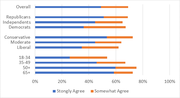 Survey results also show that an overwhelming majority of Utah voters — 84% — are unfamiliar with Utah's property tax circuit breaker program which provides tax relief to older homeowners and renters who meet income eligibility requirements. This includes 76% of those age 65 and older who are unfamiliar with the program — many of whom are among the eligible population. With Utah's current high cost of housing and increased property taxes, Utah's legislature has a significant opportunity to help more Utahns access tax relief that already exists but is underutilized.