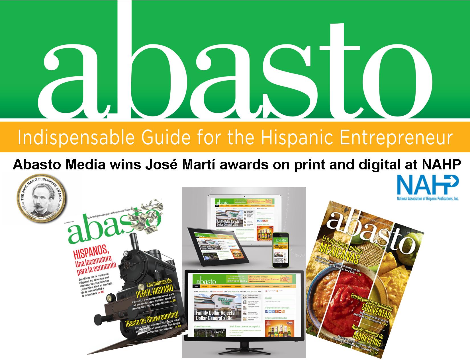 Winston-Salem, NC, November 5, 2015 (Newswire.com) - Abasto Media was presented with 12 José Martí awards for journalism, awarded by the National Association of Hispanic Publications (NAHP). The organization's 2015 Annual Convention was held in Dallas, Texas.