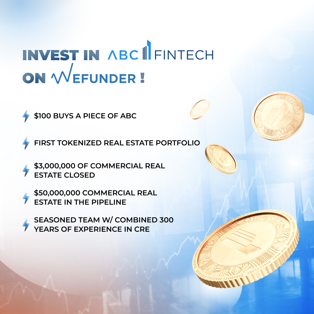 Asset-Backed Cryptocurrency (ABC) Tokens is democratizing commercial real estate investing by lowering barriers to entry and creating fractional ownership through blockchain-based digital securities. ABC Tokens emphasizes security, liquidity, and accessibility for investors across the globe. For more information, please visit https://www.abctokens.com/ or go directly to the Wefunder page by clicking here: https://wefunder.com/abcfintech.
