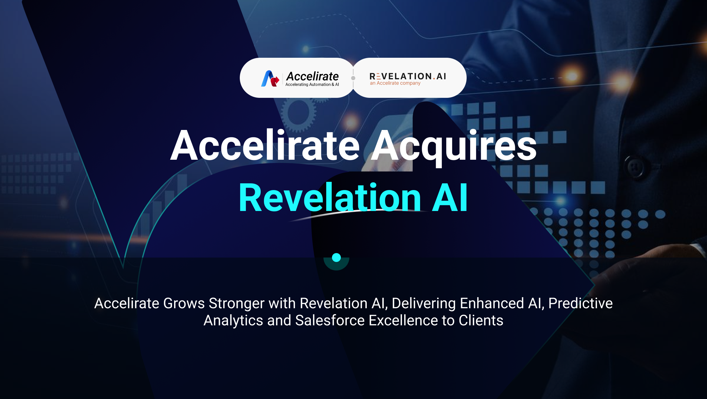 "Revelation AI's expertise in both the Salesforce ecosystem and data analytics/AI makes it a highly complementary addition to not only our existing Salesforce and Mulesoft practices but also to our rapidly expanding data and analytics division," said Ahmed Zaidi, CEO of Accelirate. "We are excited to welcome the Revelation AI team to Accelirate and look forward to delivering more value and innovation to our clients."