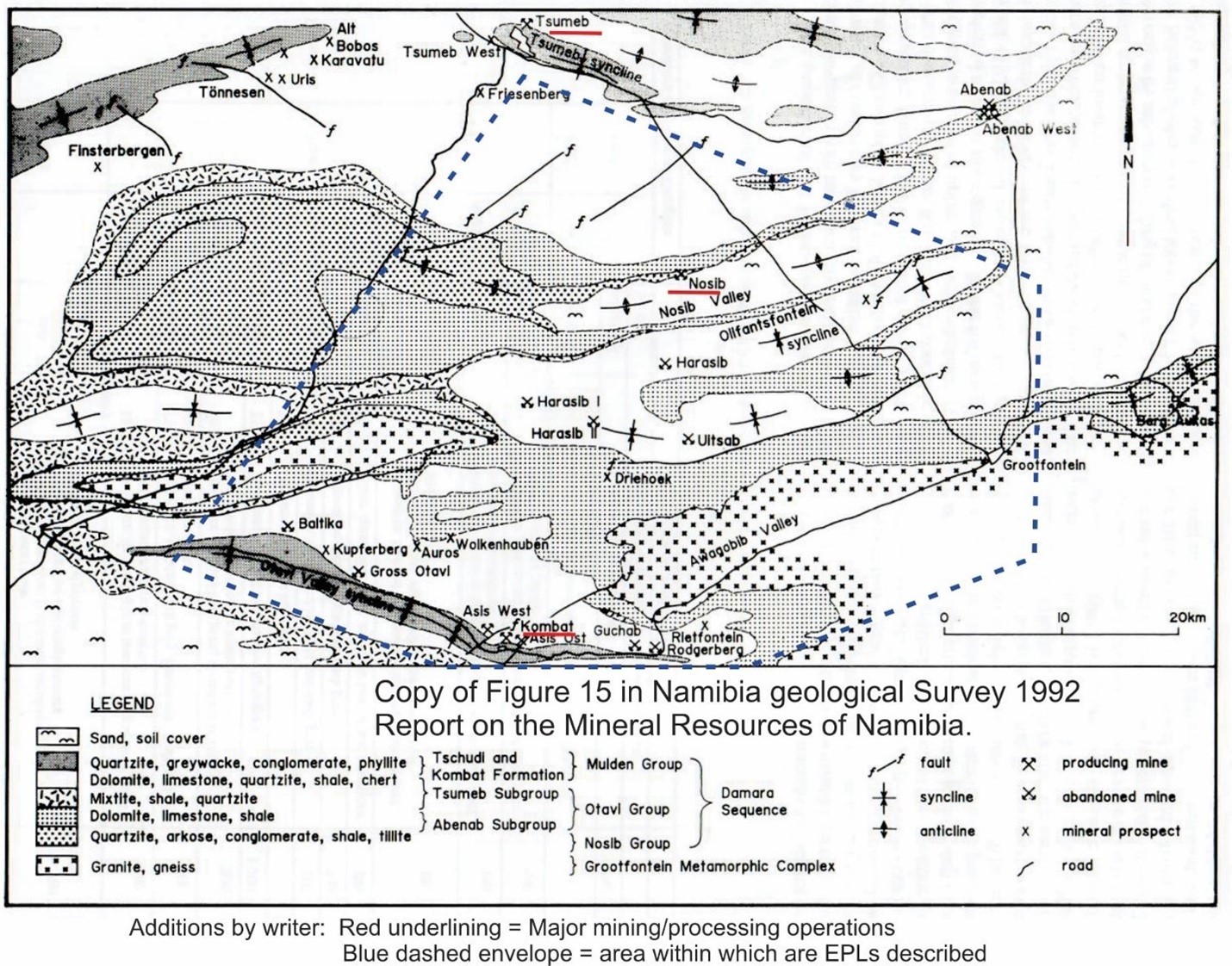 Readers are referred to the map below, which is copied from a Namibian Geological Survey Report (1992).