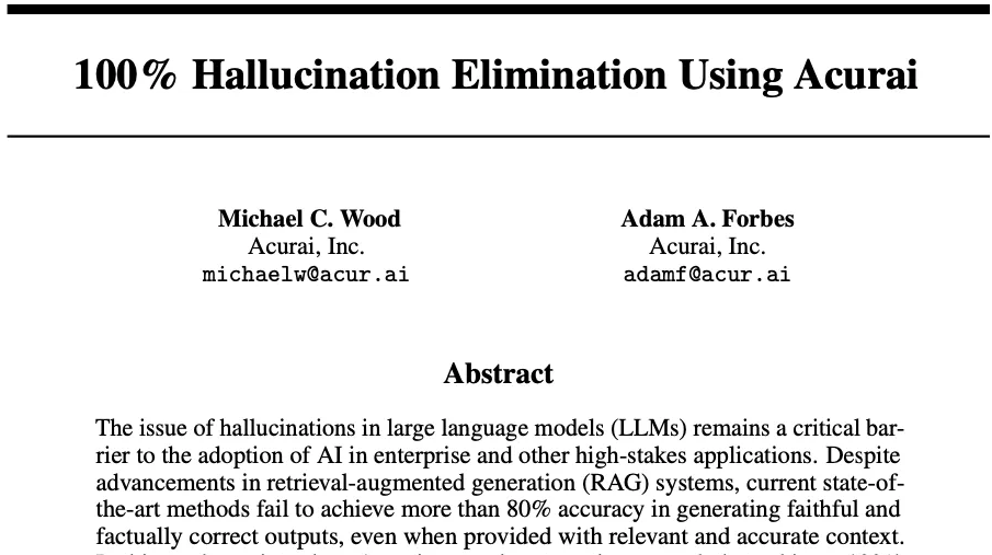 "This breakthrough marks a pivotal moment for AI," said Michael Wood, CEO and co-founder of Acurai. "Enterprises need AI they can trust, and Acurai is the first to deliver on that promise. By eliminating hallucinations entirely, we're opening the door for safer, more reliable AI integration across industries."