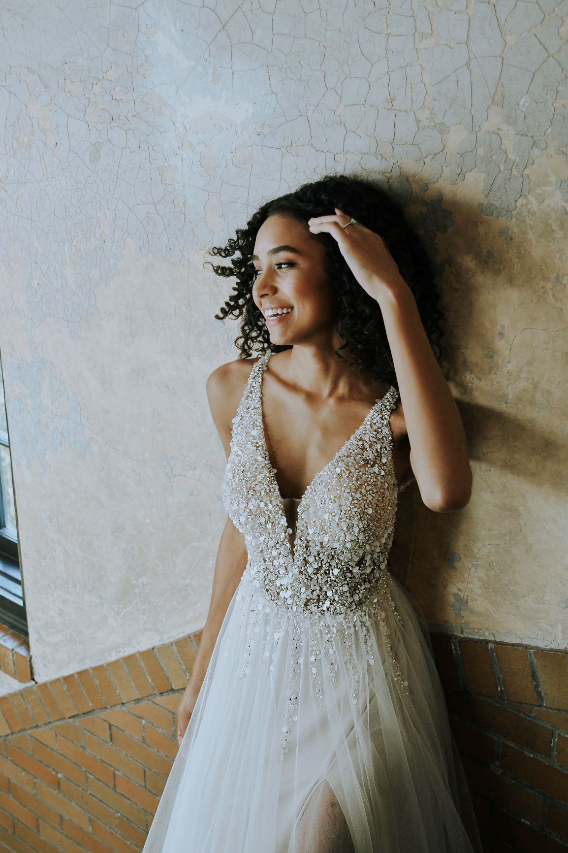 Details taking the spotlight this season include a variety of unique laces, taking form in a mix of organic florals and interesting graphic shapes. Also featured is a series of richly embroidered patterns, creating elegant forms over the body with thoughtful placement over each curve to enhance the figure. These strong visual features are complemented by an array of simple, minimalist-inspired straps and delicate trains for a clean and balanced look.