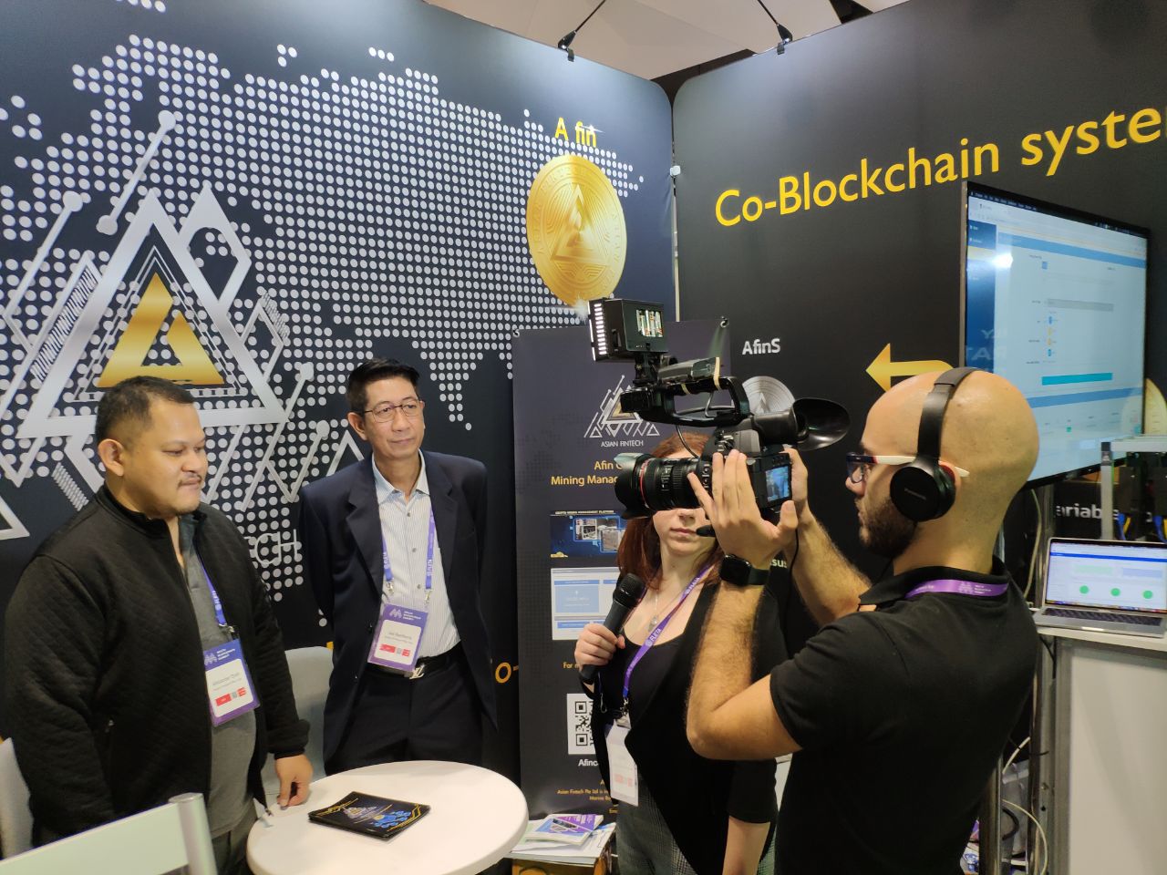 Afin Coin, in exhibitor booth 78, explained to the audience what they mean when they refer to a Co-Blockchain system. According to Gai Nanthana, commercial and project director for Asian Fintech PTE LTD, one of the reasons the Afin Coin project has two coins is to avoid the volatility that cryptocurrency is often feared for.