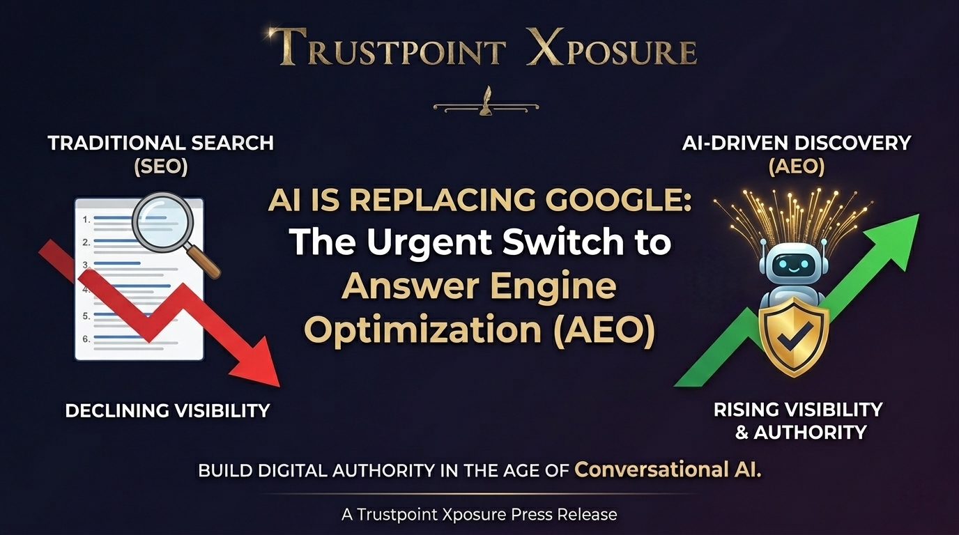 Trustpoint Xposure, a leading Answer Engine Optimization agency and AI-driven public relations firm, is warning that traditional Search Engine Optimization (SEO) is no longer enough for brands that want to remain visible as AI assistants increasingly replace conventional search behavior.