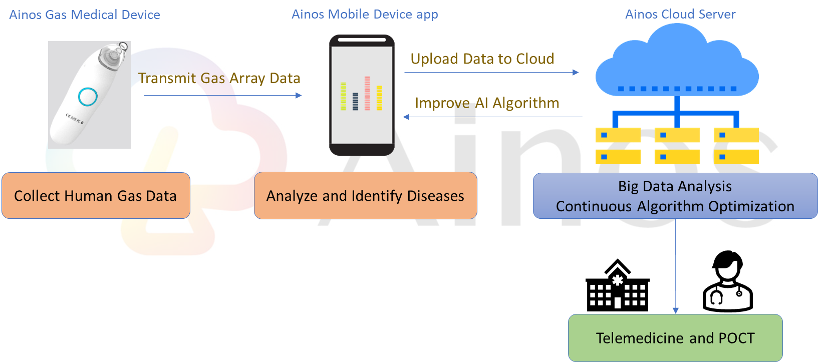 Having garnered over 50 active and pending patents, Ainos' AI Nose technology embodies the essence of over 10 years of research and development in digital nose sensing, telehealth, and point-of-care testing. It seamlessly integrates artificial intelligence with digital nose sensors, and serves as the core growth engine for Ainos, whose company name is a fusion of the words "AI" and "Nose". With advances in chip computing power and memory capacity, Ainos has utilized deep learning and other advanced AI algorithms to accelerate productization of its AI Nose technology by leaps and bounds.