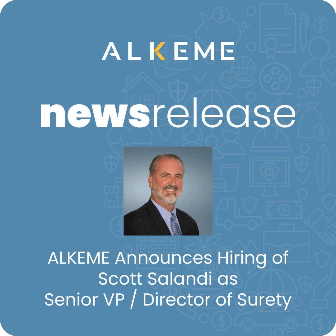 "I am excited to join ALKEME and contribute to its continued focus in the surety industry," said Scott Salandi, Director of Surety. "I look forward to working with the talented team at ALKEME to develop and implement a national surety practice that will add value to the existing client relationships and expand into new surety markets. Together, we will achieve our long-term growth objectives and create significant value for our stakeholders."