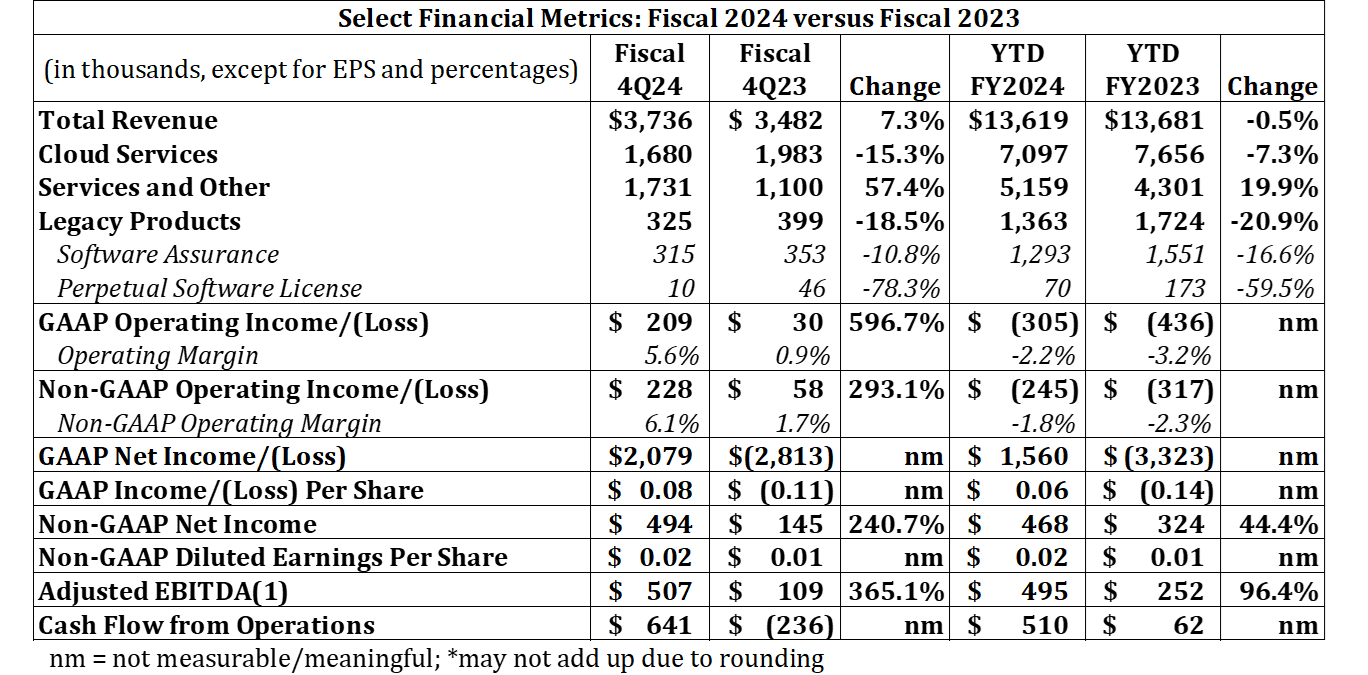 Cloud services revenue was $7.1 million, compared with $7.6 million;
