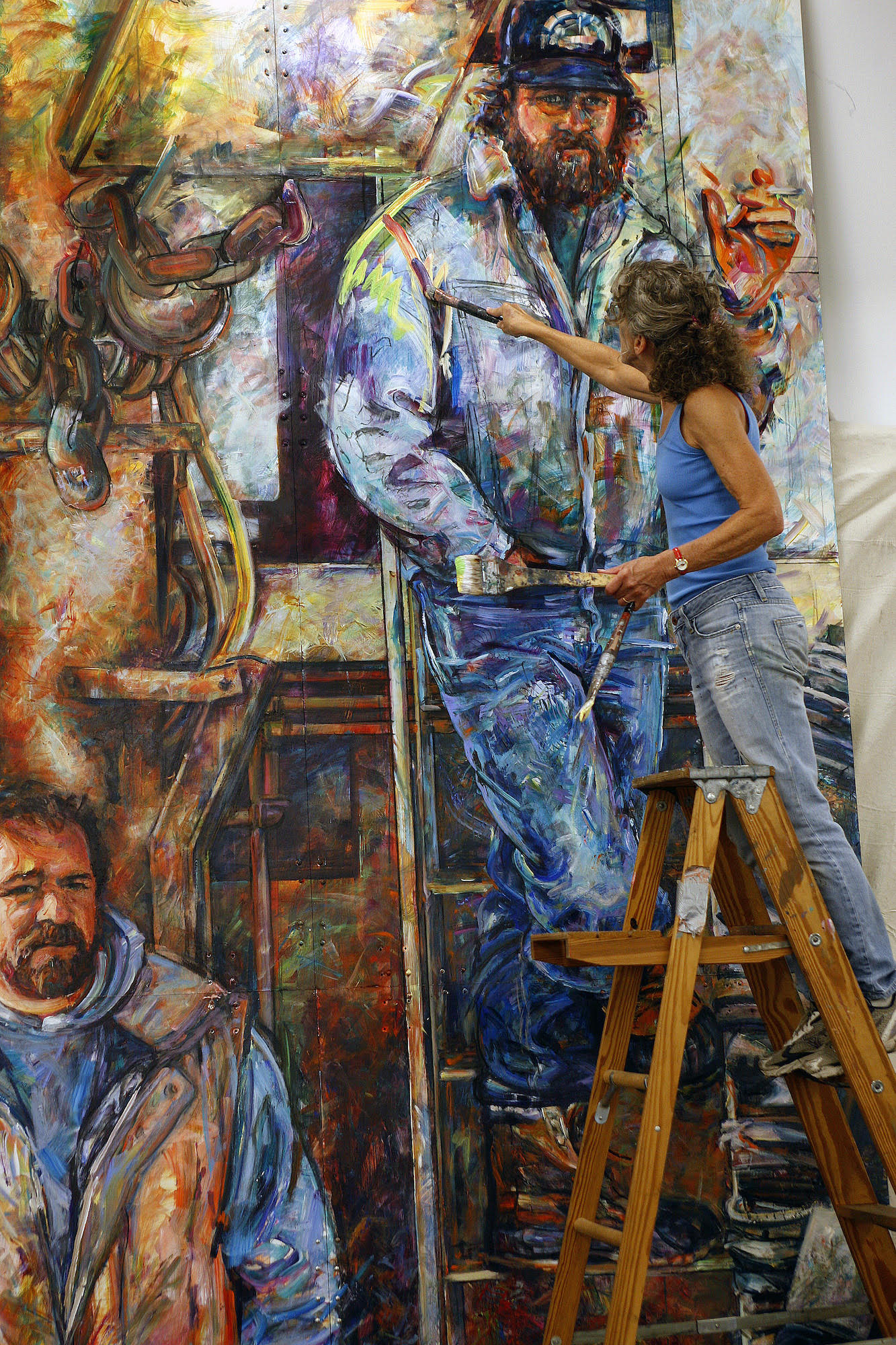 A veteran artist, photographer, and designer, Ellen Griesedieck first conceived of the mural in 1999, with a vision to create a giant collaborative artwork that celebrates American ingenuity, productivity, and commitment to work. Depicting real men and women Griesedieck documented in her travels across the country, the extensive project was driven by her mission to empower and challenge others, especially children—not only by educating them on the varying types of work happening around them but by involving them in the mural's creation.