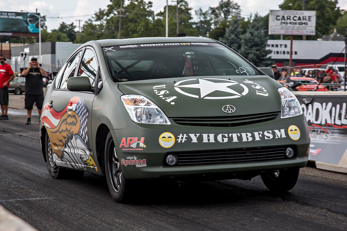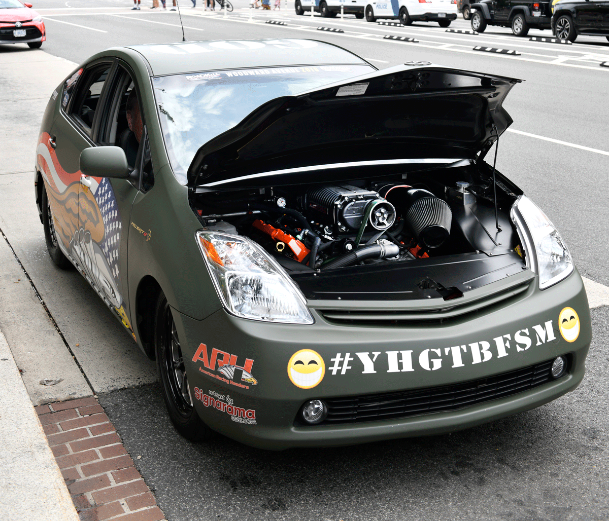 “With our military-themed livery, combined with comedy on display everywhere you look, not to mention 1,100 glorious Hellcat-powered horsepower under the hood, the PriuSRT8 is sure to generate some great laughs and lasting memories for our troops,” says Nick Filippides, CEO of American Racing Headers. “We are extremely proud to have this rare opportunity to give a little something back to those that will sacrifice all to preserve our American way of life. For the American Racing Headers team, nothing we’ve done in the past can measure up to this, and we can’t be more humble or grateful. We also salute those who helped clear the way for the ‘A Hemi For Heroes’ event.”