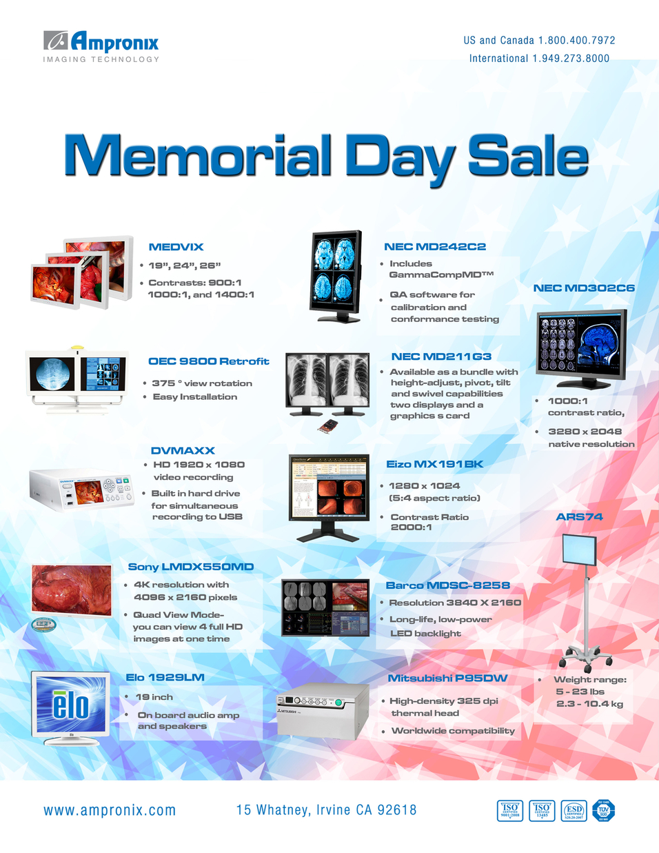Ampronix is a renowned authorized reseller of the medical industry's top brands as well as a world class manufacturer of innovative technology. Since 1982, Ampronix has been dedicated to meeting the growing needs of the medical community with its extensive product knowledge, outstanding service, and state-of-the-art repair facility. Ampronix prides itself on its ability to offer tailored, one-stop solutions at a faster and more cost effective rate than other manufacturers. Ampronix is ISO 13485:2003, ISO 9001:2008, and ANSI/ESD S20.20-2007 registered and certified.