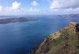 Today, Santorini is the only inhabited caldera in the world. Unlike other islands in Greece, the towns and villages sit densely on top of the massive cliffs of the caldera and from a distance appear like snow capping the towering mountain tops. At the highest point of the caldera, the village of Imerovigli boasts amphitheatric views of the entire island of Santorini from the top point of the village of Oia, to the capital Fira, down to the prehistoric town of Akrotiri and out toward the remaining small islands which together comprise the municipality of Santorini.