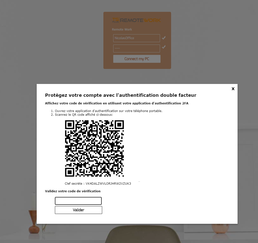 Once 2FA is activated, the process is the same as described in TSplus' online user guide. A 15-day trial is included in the downloadable version of Remote Work.