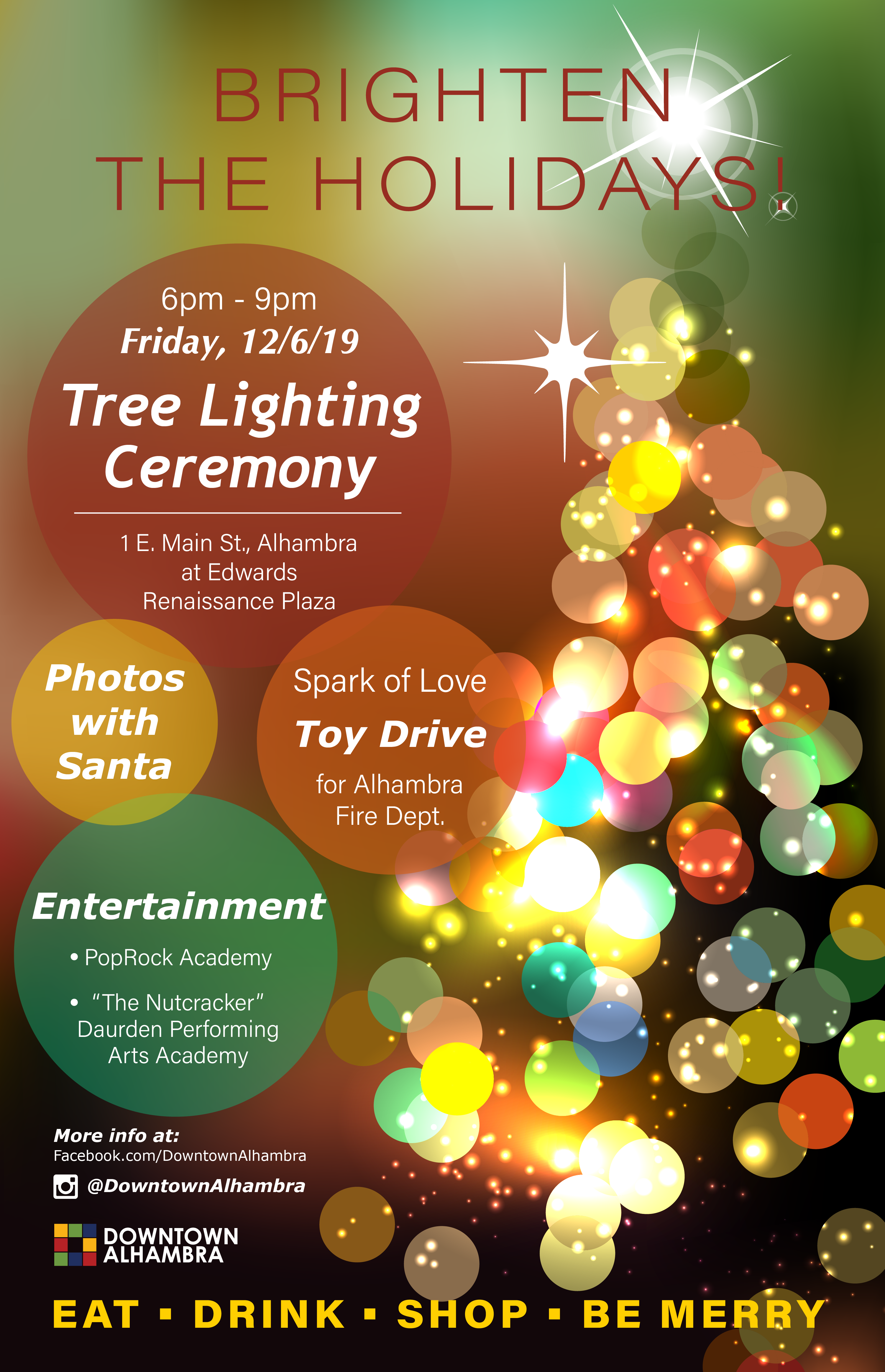 Tags: Daurden Performing Arts, Downtown Alhambra, Family Fun, Foodies, PopRock Academy, Santa Photos, Shopping, Spark of Love, Toy Drive, Tree Lighting