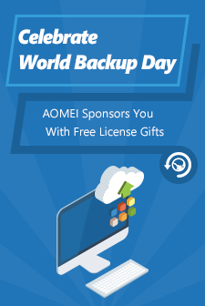 As a company always dedicated to protecting global data, AOMEI is proud to provide users with the easy-to-use backup software and reliable backup service. Here AOMEI would like to celebrate World Backup Day with an exciting offer – giving away free AOMEI Backupper Professional licenses for users as the gifts. This activity lasts from March 30 to April 1, 2018.