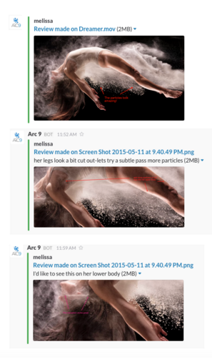 Los Angeles, California, January 6, 2016 (Newswire.com) - Arc9 and Slack are teaming up to take creative content communication to the next level of real time global creative content collaboration. This revolutionary integration facilitates the support of the creative content collaboration process from start to finish. Every action done in your new or existing Arc 9 projects is now automatically in sync with your slack channels keeping your team updated with instant notification and previews of reviews, review requests, approvals and presentations. Arc 9 + Slack gives the creative user an array of tools unmatched by any other platform. The combination of Arc 9 and Slack’s real time organized chat, gives you the ability to file share, review and approve, and create presentations all with instant notifications on any device including your iWatch. Teams can choose to preview or simply click the notification to take action.