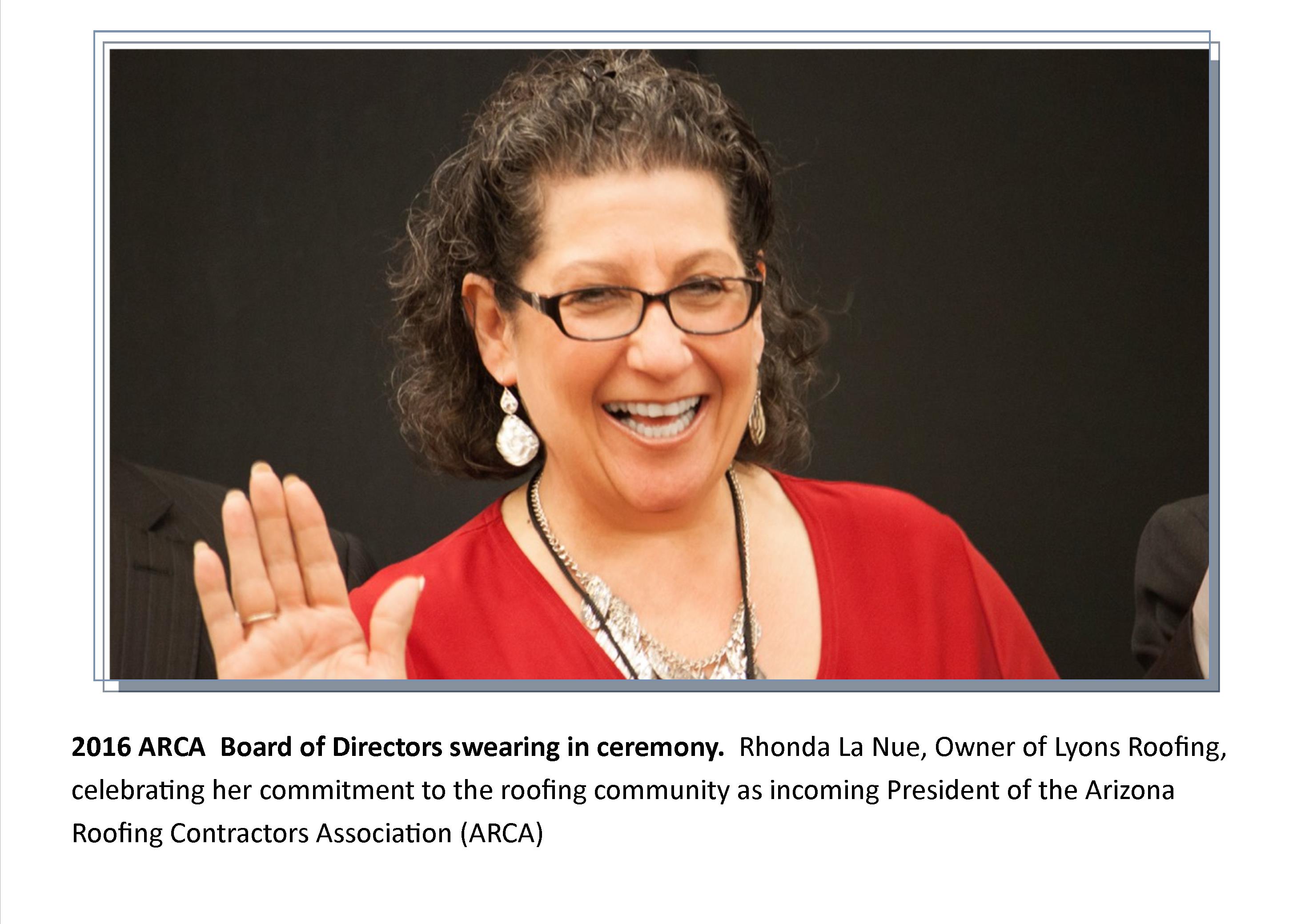 Phoenix, Arizona, October 7, 2015 (Newswire.com) - The Arizona Roofing Contractors Association (ARCA) has named Rhonda La Nue, owner of Lyons Roofing, as president of ARCA.