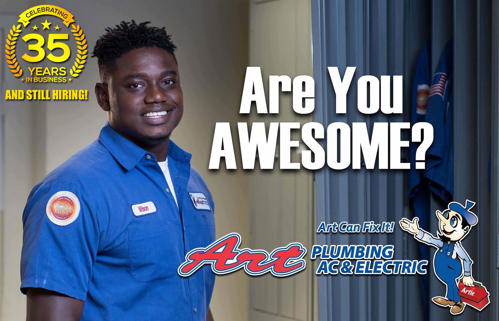 If you are interested in careers in plumbing, AC, or electric and wish to join the Art Plumbing, AC & Electric family, be sure to apply online today.