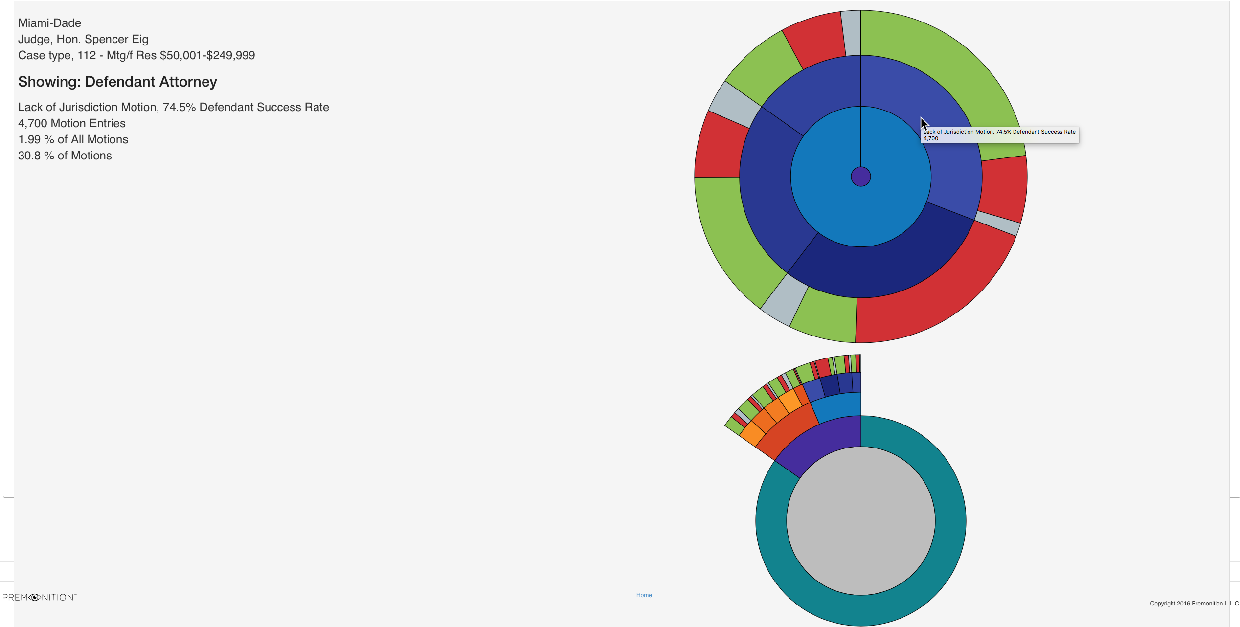 Miami, Florida, December 28, 2016 (Newswire.com) - Premonition, the Miami-based Artificial Intelligence company, releases Motions Analyzer, its latest report developed to increase the odds of winning in litigation by showing the win rate of motions in a particular court. By using the World’s largest litigation database, Motions Analyzer determines the best motion to make in developing a data-driven approach to litigation strategy with potentially better legal outcomes. For example, only Premonition knows a change of venue may be the best motion to statistically make for a specific case type in a particular court.