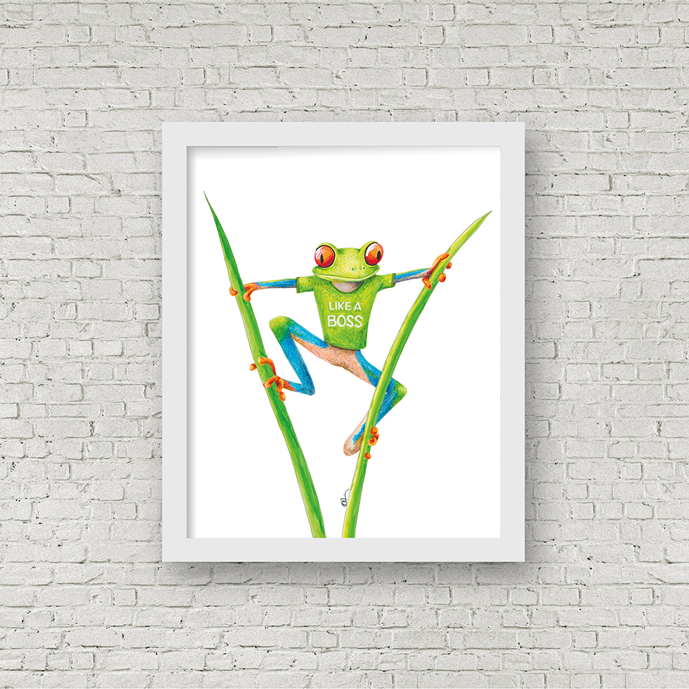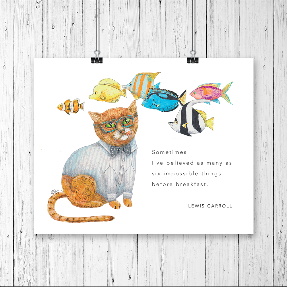 “Animal lovers get a big kick out of animals dressed as humans,” says Mariam, who is also a veterinarian. “And each one of my pieces is both fun and symbolic. Based on these animals’ traits in the wild, I imagined what human traits they would have. What books would they read? What clothes would they wear? How would they pass their time? And so on. And after I created each animal’s persona, the drawings just kind of … flowed out of me.”