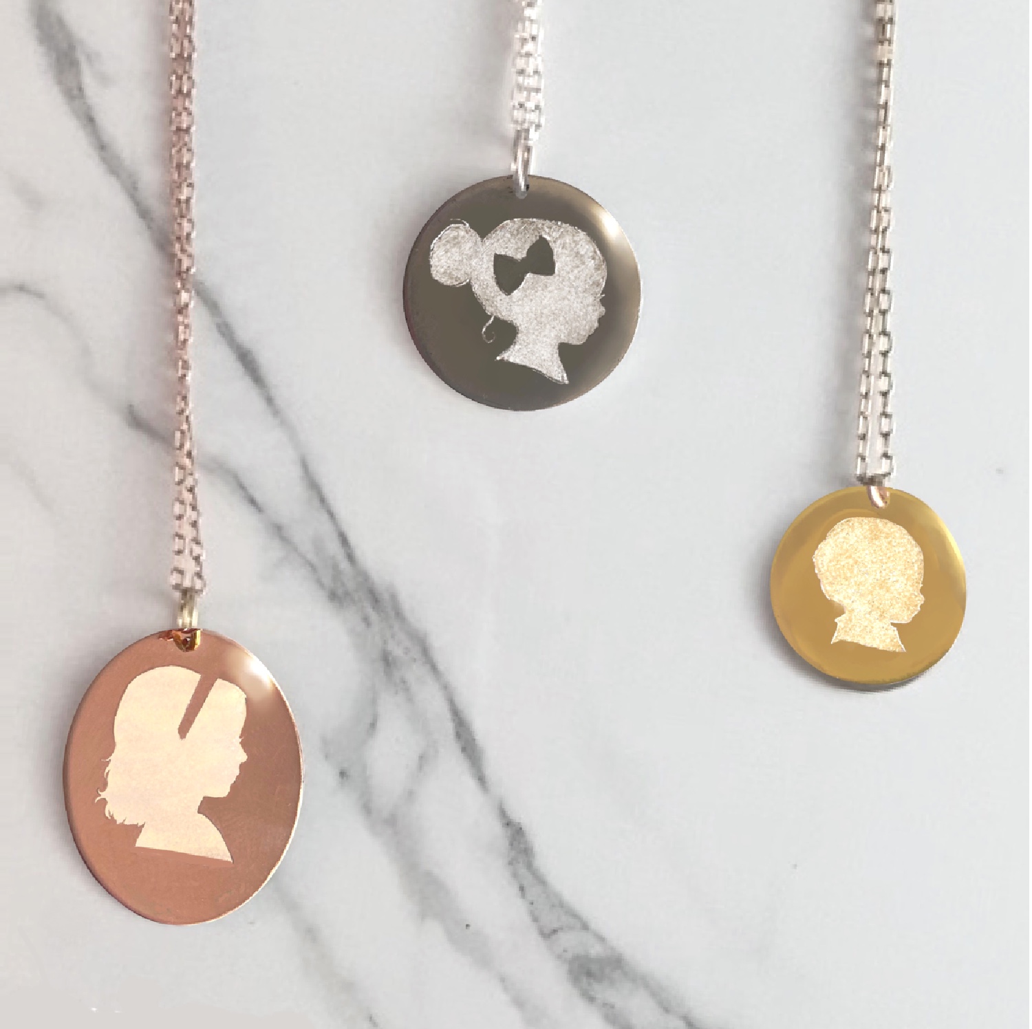 Tags: custom silhouette, gold disc pendants, gold necklace, personalized, precious metal jewelry, rose gold charm