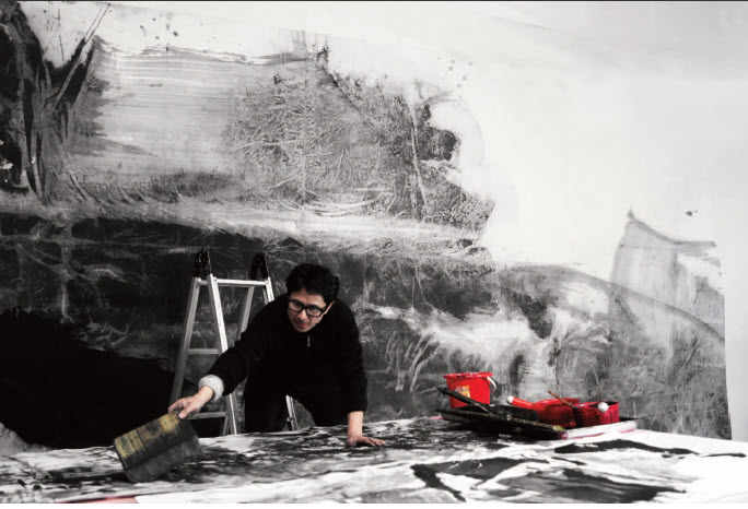 Born in Sichuan China in 1959, Lan graduated in 1987 from one of China’s most prestigious art academies, the Sichuan Academy of Art (famous alumni include Zhang Xiaogang and Zhou Chunya). He has focused his career working in contemporary ink painting and calligraphy, and his powerful ink movement is based on more than 20 years of passionate research for his vision of constructing art via ink traditions in new ways.