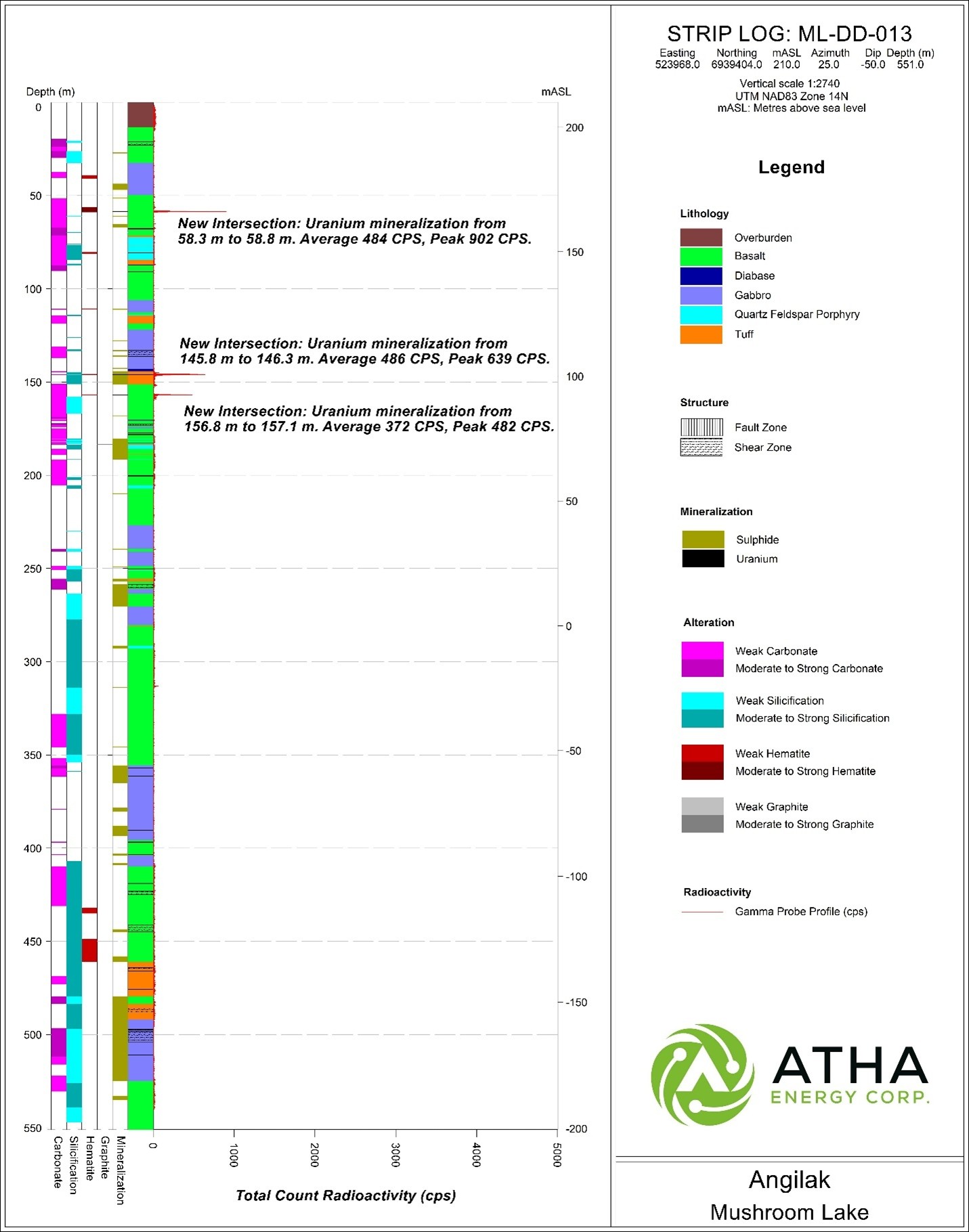 Troy Boisjoli, CEO commented: "The successful results from Mushroom Lake and KU Discovery continue to demonstrate the Angilak difference. The 2025 Angilak Exploration Program was an unprecedented success with five new discoveries along the RIB-Nine Iron Trend and the effective application of EM Inversion providing a road map to discovery. The Company has transformed the Angilak Uranium Project and set the stage for what will be a catalyst filled 2026. At a time when the world is looking to stable jurisdictions to supply the Nuclear Renaissance with the raw materials it needs to make it happen, ATHA Energy is primed to help answer those demands."