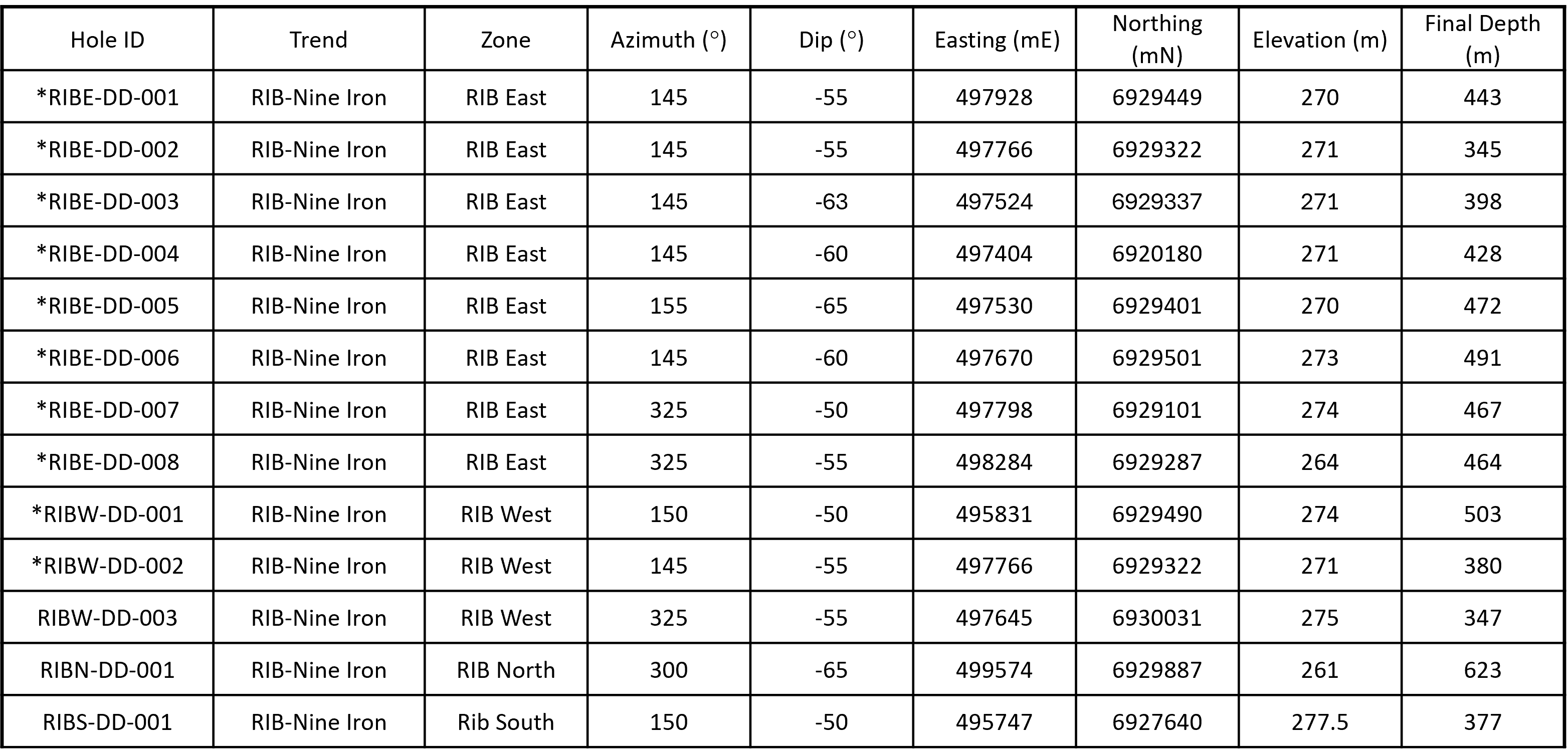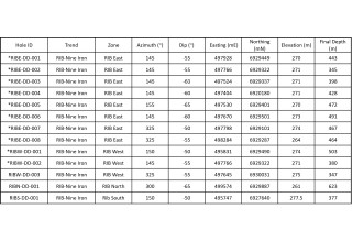 Major new discovery within the Mineralized RIB Corridor ("MRC"), the RIB North Discovery, located ~1.4 km along strike from the nearest drillhole at the RIB East Discovery (Figures 1 & 2);