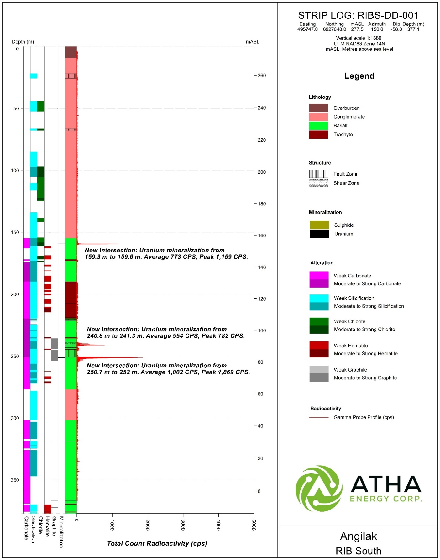 Troy Boisjoli, CEO commented: "The newest drillhole results from the RIB North Discovery, situated along the Mineralized RIB Corridor (MRC), represent a distinct achievement, not only for the 2025 Angilak Exploration Program, but for the Company as a whole. They demonstrate that the Angilak Uranium Project has the potential to host thick, high-grade, basement hosted uranium mineralization on scale similar to what is found in the Athabasca Basin. From my previous experience working in both exploration and production across the Athabasca Basin, I am keenly aware of the geological characteristics of basement hosted style uranium deposits. ATHA's first hole at the RIB North Discovery, RIBN-DD-001, displays similar grades and thicknesses as other discovery holes from major basement deposits. When coupling the results from RIB North with the cumulative discoveries made across the 12 km long MRC, the evidence is stacking up that the MRC has the potential to host discoveries like those found along the Patterson Lake Corridor. Angilak has the makings of Canada's newest uranium jurisdiction, and this comes on the heels of the recent announcement by the US government for the need to increase their strategic reserves beyond the current 14-month stockpile - the US' current annual demand is ~50 million lbs U3O8. The Company couldn't be more excited about the trajectory of success at our Angilak Uranium Project and the entire uranium sector as whole."