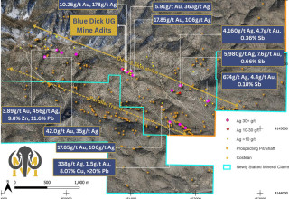 The silver-rich polymetallic Blue Dick Zone has been further expanded, extending the known mineralized trend to over 3.5 km, with evidence for multiple untested parallel trends supported by newly staked tenure and extensive historical workings mapped from LiDAR, following up on previously reported rock chip results: